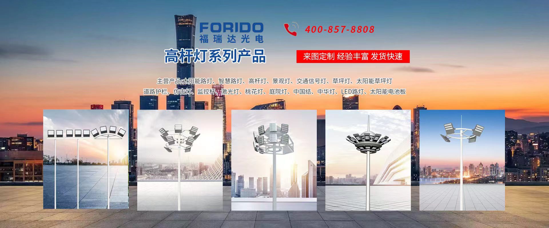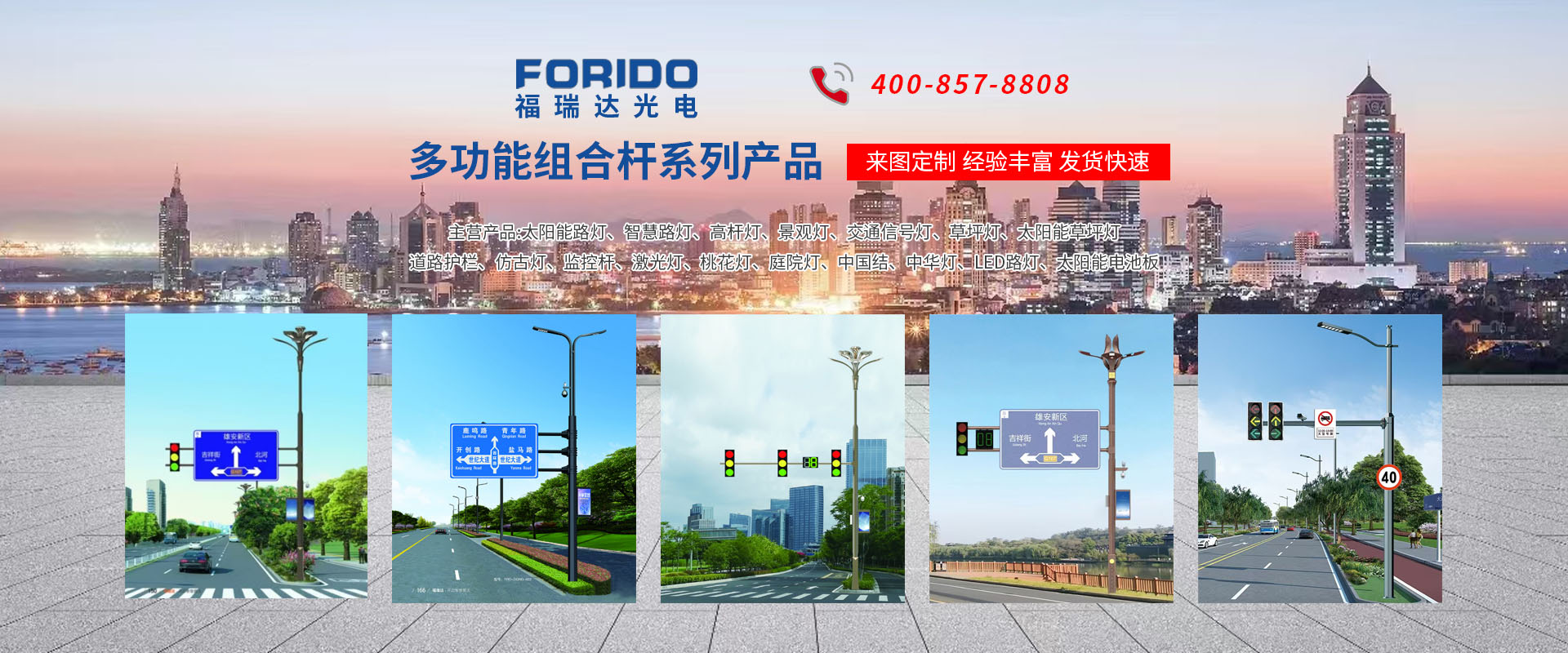 揚(yáng)州福瑞達(dá)光電科技有限公司位于淮左名都?xì)v史文化名城、中國(guó)路燈制造基地?fù)P州市北郊菱塘工業(yè)園,公司占地面積76000平方米,注冊(cè)資金10518萬元,擁有高級(jí)技術(shù)嫻熟的員工280多人,擁有大型折彎?rùn)C(jī)、激光切割、數(shù)控注塑機(jī)、壓鑄機(jī)、自動(dòng)埋弧焊、氣焊、彩色粉末靜電噴塑等大型自動(dòng)化設(shè)備,我公司是一家集設(shè)計(jì)、研發(fā)、生產(chǎn)、銷售、施工安裝服務(wù)為一體的戶外交通照明產(chǎn)品制造商,主要生產(chǎn)智慧路燈、太陽能路燈、LED路燈、高桿燈、景觀燈、交通信號(hào)燈、交通標(biāo)志牌、通信鐵塔、路跨鋼結(jié)構(gòu)、公交站臺(tái)、太陽能光伏組件、景點(diǎn)亮化、樓宇亮化工程的設(shè)計(jì)施工等。公司秉承開拓創(chuàng)新、銳意進(jìn)取、精誠(chéng)服務(wù)的企業(yè)精神,堅(jiān)持以“誠(chéng)信為本、技術(shù)為先、服務(wù)是金”的合作理念,我們憑借先進(jìn)的制造工藝、優(yōu)質(zhì)的產(chǎn)品質(zhì)量、合理的市場(chǎng)價(jià)格和完善的售后服務(wù)贏得了廣闊的市場(chǎng)和客戶的信賴。  我公司已通過ISO9001質(zhì)量體系認(rèn)證、ISO14001環(huán)境管理體認(rèn)證,CQC產(chǎn)品認(rèn)證,中國(guó)節(jié)能產(chǎn)品認(rèn)證,通過“CCC”強(qiáng)制性產(chǎn)品認(rèn)證,具有市政總承包,照明,交安,設(shè)計(jì)等資質(zhì)···